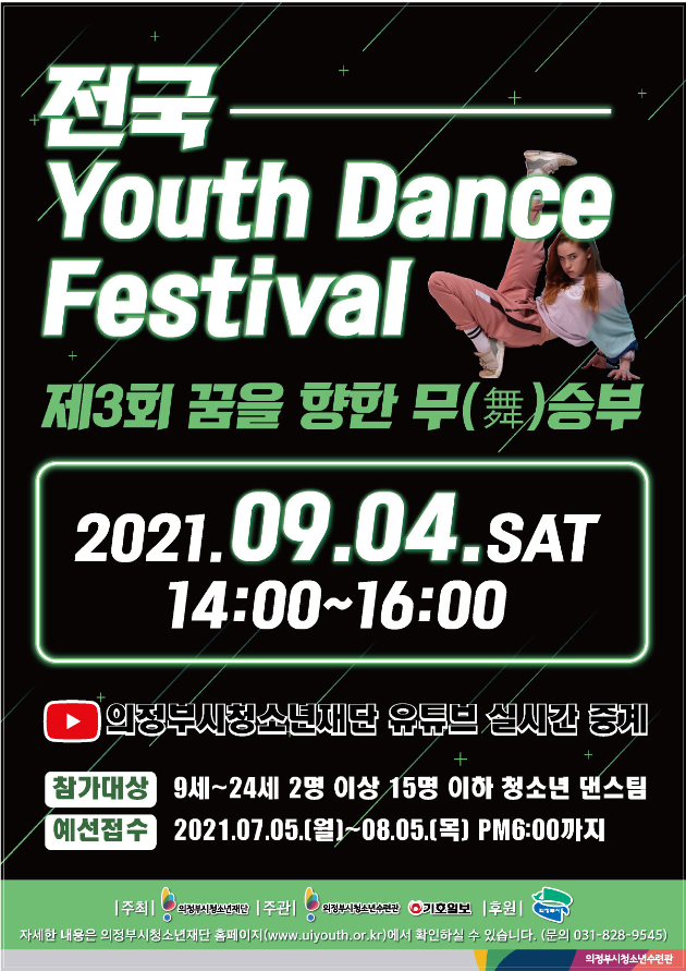 | 제목 | 2021 전국 청소년 댄스페스티벌 '제3회 꿈을 향한 무(舞)승부' 안내 | ||||