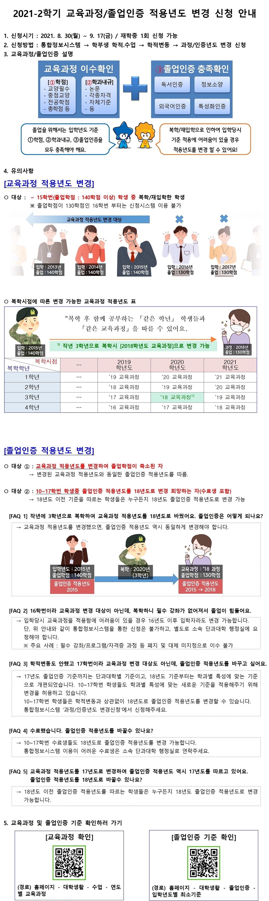 | 제목 | 2021-2학기 교육과정/졸업인증 적용년도 변경 신청 안내 | ||||