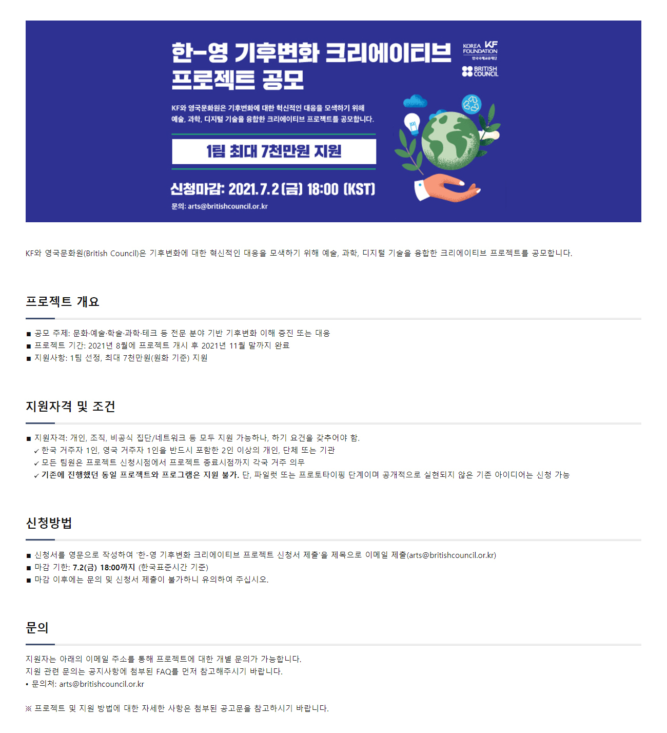 | 제목 | KF-영국문화원 '한-영 기후변화 크리에이티브 프로젝트' 공모 안내 | ||||